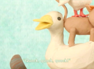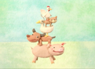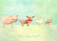 動物の鳴き声をうたった歌に合わせた作品。 撮影手法は、半立体のクレイ人形をマルチプレーン方式で撮影しました。 (この時は、セルアニメーションを撮影していた《線画台》を使用)