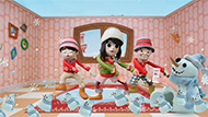 : 手法は、人物の実写とクレイアニメーションの合成になります。クレイアニメーションは、2つの撮影方法で行いました。1つ目は、背景のミニチュアと同位置で自立した人形を撮影した物。2つ目は、半立体の人形や素材をマルチプレーン方式でマスク素材と共に撮影しました。今作は、クレイアニメーションでメタモルフォーゼをし、ダンスをしている所が見せ場でございます。