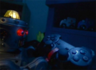 その部屋に置いてあるロボットが夜中に遊んでいる設定。